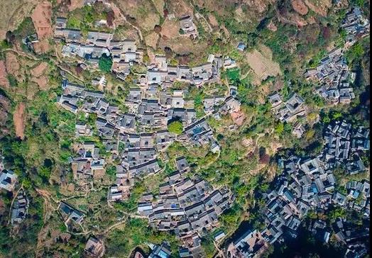 諾鄧村地處深山,最高處的玉皇閣,海拔達2300米。全村除了東面山麓“龍王廟”后面有一小塊較平坦的臺地外,所有的民居幾乎都建在山坡上。從山頂到山腳,層層疊疊的房子就像掛在半空中一樣。