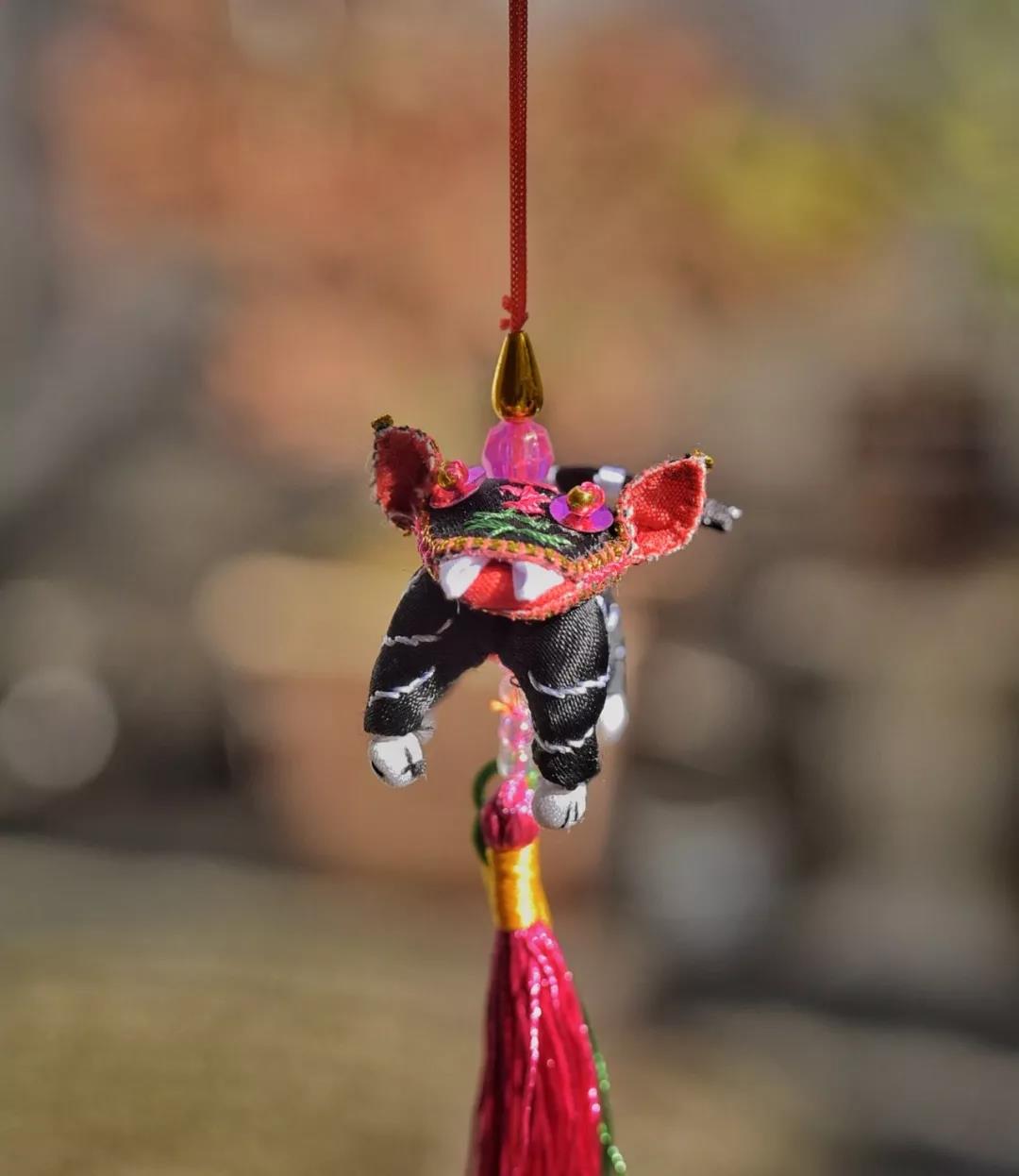 趙新妹通常都是把十多串的布扎(劍川的布扎按串來計算,一般將8個及其以上的配件穿成一串)放在一起賣。作品不僅花樣多、款式新,還可以根據喜好挑選獅子、繡球、老虎 、童子等不同小物件,十分討小孩子喜歡。“很多熟人都是找著過來買,一般不到下午五點,所有布扎便被搶購一空。”