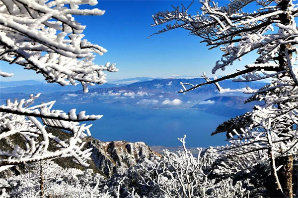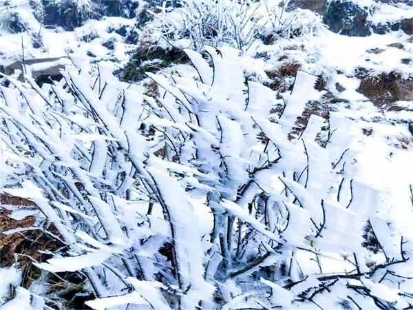 洱源羅平山是洱源縣境內最高的山峰之一,四季風光秀美。“大雪壓青松,青松挺且直。”冬日里,羅平山上,雪花將山間染成純白色,樹葉上結滿了厚厚的冰晶,仿佛要把弱小的葉片壓彎,但它卻依舊保持著自己的形狀,不肯讓步半分!
