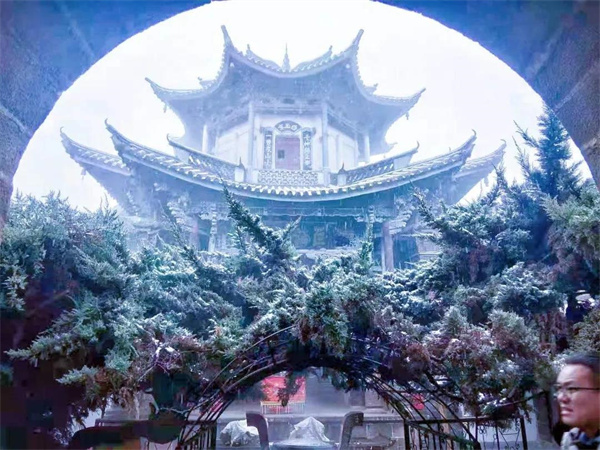 賓川 冬日的雞足山,更顯莊嚴神圣,卻又多了幾分靈動。仿佛只需一夜,雪花便能灑滿大地,雞足山變成一片銀白。飄落的雪花掛滿枝頭、散落在地、停在游人肩上,裝點著這一方圣地。
