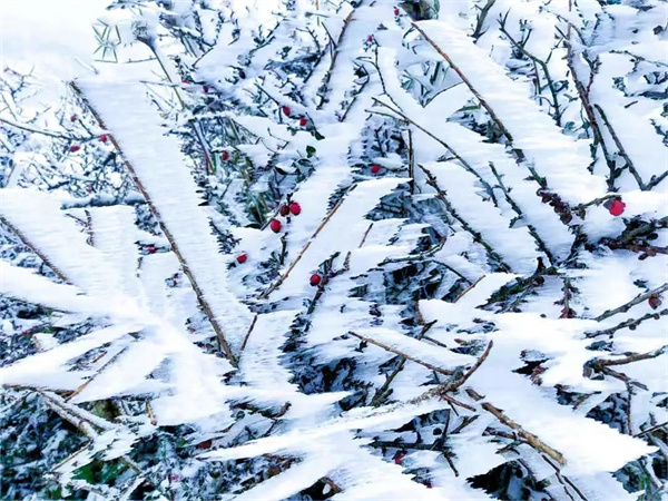“青山原不老,為雪白頭。”覆蓋在枝葉上的白雪在清晨陽光的照射下更顯晶瑩透亮,銀裝素裹的世界,緩緩到來!