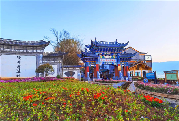 金梭織錦,玉璣紅蓮、彌勒笑天、石女牧鵝、虎口觀潮、青雞欲跳、正覺鐘聲、紅山圣跡、羅蒔戲水、島依古榕、蓮花紅遍、巨蟒奔海、龜蛇相峙等十八勝景與古鎮蜿蜒、漁家燈火濃縮于蒼山洱海雙廊鎮畫卷之中,古人詩曰“目極湖山千里外,人在水天一色中”,不知這里是仙境,還是天上人間。