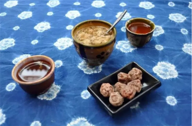 米酒乳扇羹是大理當地有名的一道特色美食。鍋內倒入適量的水燒開,將醪糟倒入沸水中攪勻,再打入雞蛋攪勻,加入白糖調好味的勾芡,再放入切碎的乳扇,起鍋即成。