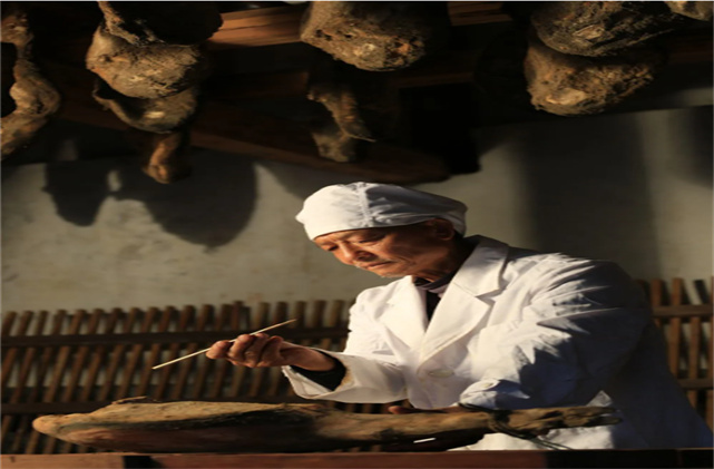 徐琨斌說(shuō),只有在諾鄧這種獨(dú)特的環(huán)境下發(fā)酵出來(lái)的最古樸的火腿,才是頂級(jí)的諾鄧火腿。
