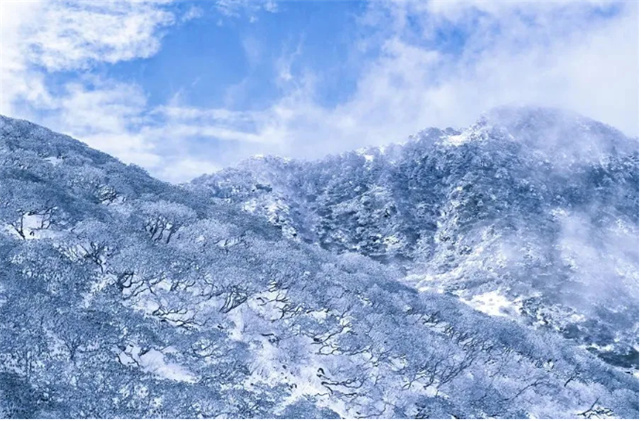繼續(xù)向上云霧散開到達(dá)洗馬潭景區(qū)銀裝素裹的世界映入眼簾。