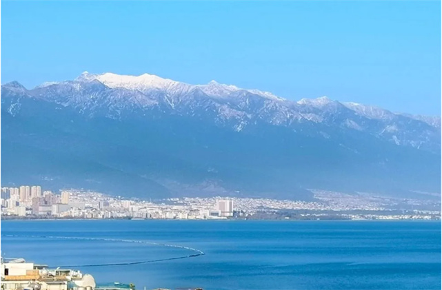 遠(yuǎn)眺蒼山雪景如畫近看洱海碧波泛藍(lán)令人賞心悅目。