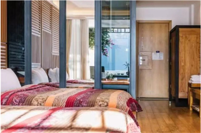 民宿臥室有超大飄窗、衣帽間、高端定制的洗漱用品等設施設備,滿足客人需求。以木制結構打造,布局精巧,自然溫暖。