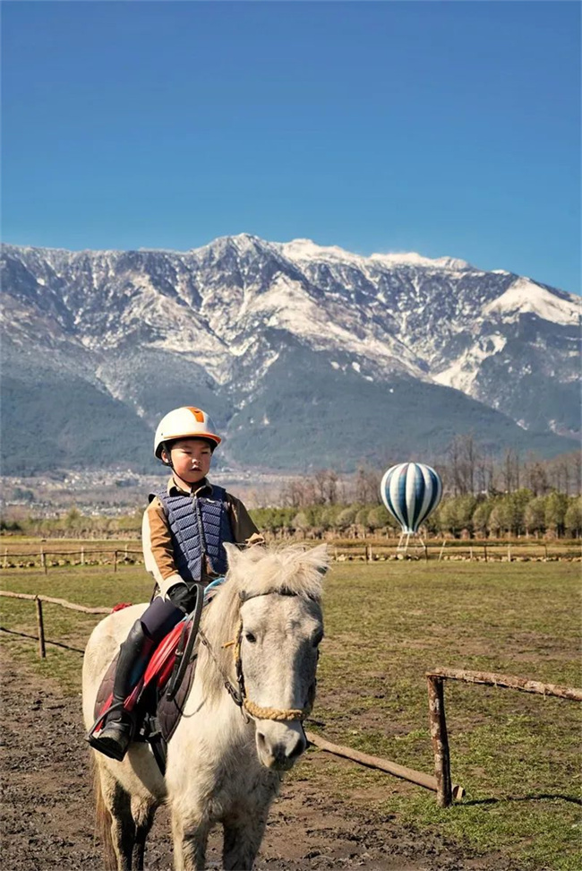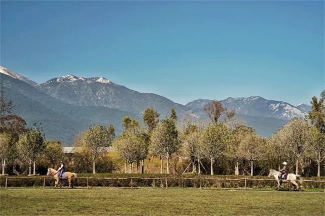 陽光下,藍天映襯著仍有白雪覆蓋的蒼山,位于山腳的馬場青草悠悠,而陽光也為馬兒們勾勒出了一個個優(yōu)雅的輪廓,在馬場邊的露天椅子上坐下,眼前的這一切美得不真實,仿佛一不小心就會陷落到了一個油畫般的世界中。“駕!駕!駕!”一位位馬術(shù)愛好者越來越熟練,他們騎著馬兒自信地跑過馬場,成為“畫作”中最生動的風景。