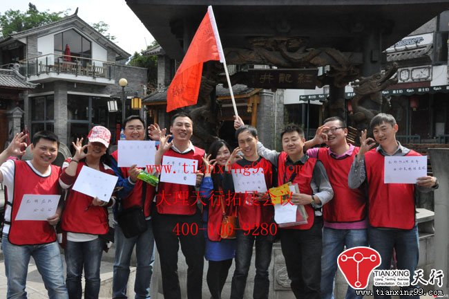 三、3個(gè)團(tuán)隊(duì)展開“大理古城趣味定向?qū)殹被顒拥摹癙K”大賽,每次完成一個(gè)任務(wù)都有相應(yīng)的分?jǐn)?shù),最終積分最多、團(tuán)隊(duì)獲勝;