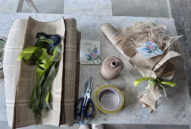 因此,我們今天最重要的環節就是讓小朋友們把自己勞作收來的麥穗,制作成花束送給媽媽。