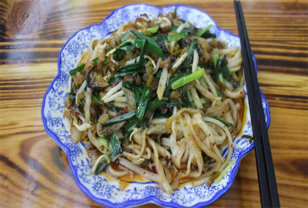 我記憶中最美味的炒餌絲,還是十年前在巍山吃的。印象中那碗炒餌絲十分干爽,沒有過多的油脂,帶著鑊氣和焦香。我從微博里搜出了當時的記錄:“早就看到街上嚯嚯有聲的炒餌絲,感覺會好吃。今天點了一份,才6塊錢,韭菜白菜酸菜加牛干巴似的肉末,果然美味!” (感慨巍山當時的物價)