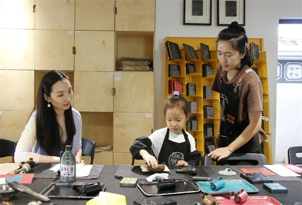 在文旅融合的大潮中,像張瑞龍一樣的手藝人積極適應時代變化,在創新發展中守護這份用墨水刷出的煙火氣。他們以“萬物皆可刻”的理念,創作了甲馬拎包、甲馬T恤、甲馬冰箱貼、甲馬手機殼等文創產品,備受年輕人的青睞。