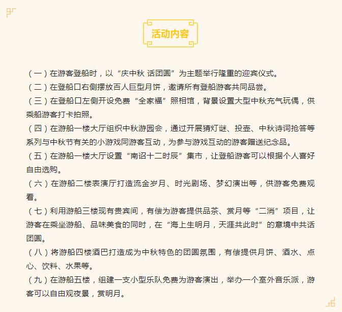 在這一天,以月為媒,家人團聚共度佳節。洱海游船分公司借此佳節良辰之際,開展“夢幻中秋夜 光影全家福”