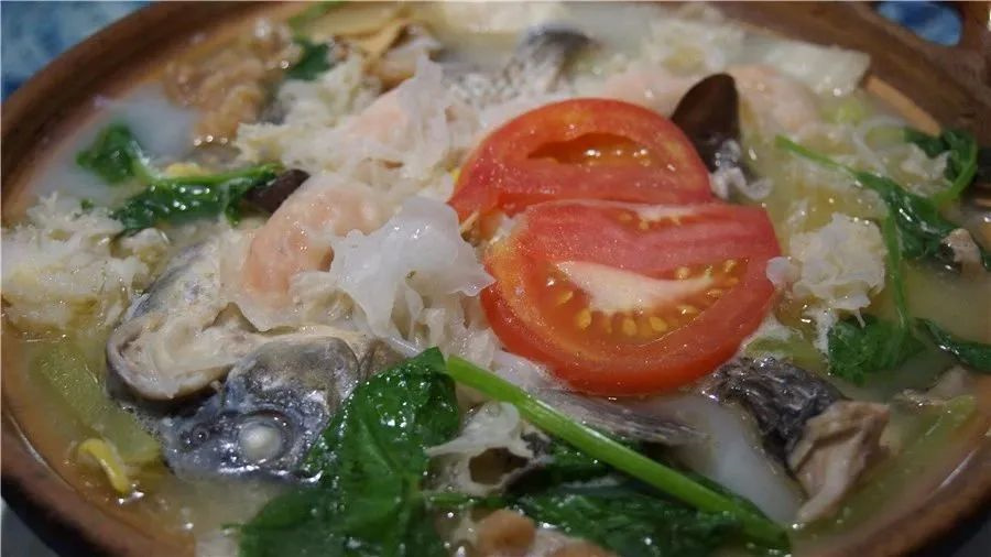 大理砂鍋魚以洱海魚為原料,用砂鍋燉制,再以菜葉為鋪墊,整道菜呈現出了一番飄紅映綠的景象。
