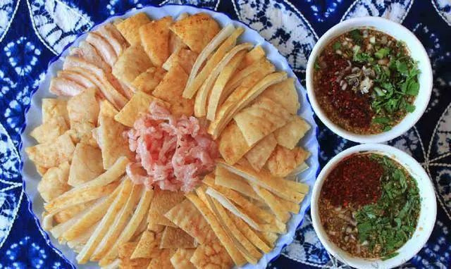 生皮是大理一帶的白族人民傳統的待客名菜,吃生皮的習俗相傳始于南詔時期,至今深受人們喜愛。凡是有白族人聚居的地方,一定有人吃生皮。所謂的生皮,就是在殺豬的時候,用稻草火燒去毛,故有“白族火燒豬”的美譽,因為口感鮮嫩,且營養豐富,沒有半點腥味,千百年來一直是當地白族群眾最喜愛的民間菜肴。