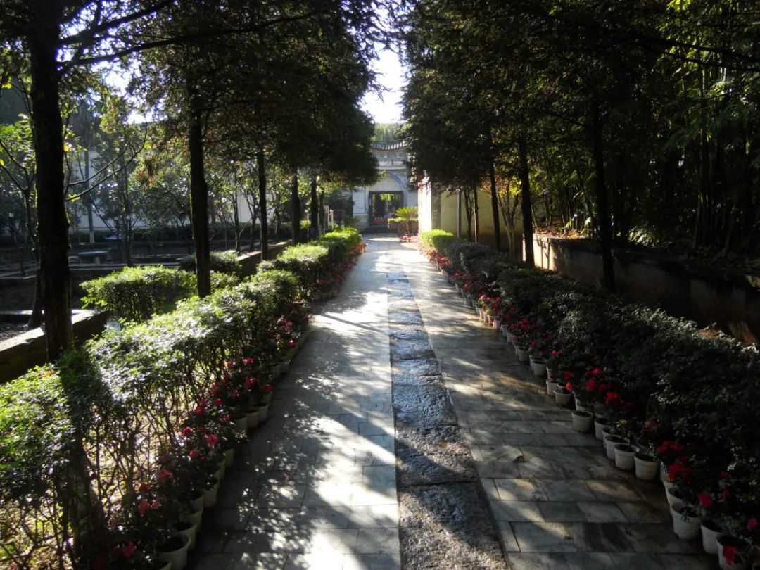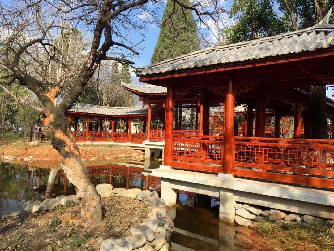 零星的建筑與池水相映,而草坪上的古本名樹在微風中輕輕搖曳。茶花、櫻花、牡丹、杜鵑、梅花、月季,一年四季交織出絢麗的色彩,如同大理的多元文化。中間的一棵高大的榕樹,猶如一把庇護的傘,將陽光透過樹葉的縫隙灑在地上。榕樹下,老人們靜靜地坐著,享受著午后的寧靜。落葉季節,榕樹葉紛紛飄落,就像是大自然為這片神秘花園鋪上了一層金黃的地毯。這座園林,宛如一首詩,每一處都是一句句優美的詩句。公園里環境優美,座椅隨處可見,好似在邀請著游人坐下,靜享這一片寧靜之美。學生們中午在這里用餐,下午做作業、聊天、下棋、玩耍,形成一派歡聲笑語的場景。古老的石碑在廊間若隱若現,它是時光的見證者,講述著大理的歷史故事。