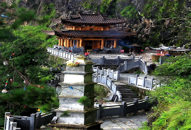 推薦路線:洗心橋—靈山一會坊—祝圣寺—虛云寺(觀光車上車去索道口)—金頂寺—華首門—迦葉殿華首門和迦葉殿在索道下行三分之一處,建議走下山腳,或折回來到索道口。