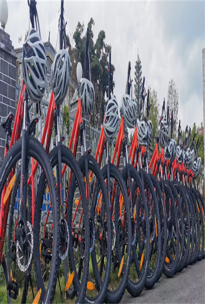 ? 每位隊員配備一臺自行車、一個頭盔、一副手套、一瓶礦泉水(出發點);