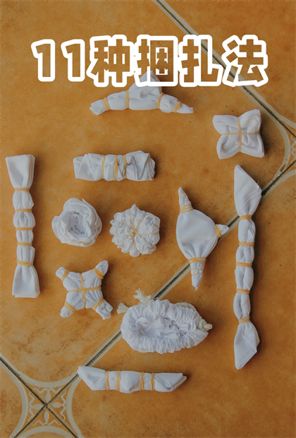 ②絞染:通過紗、線、繩等工具,對織物進行扎、縫、縛、夾等多種形式組合后形成自己想要的花色。