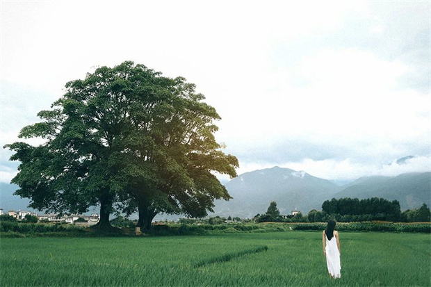 在喜洲夫妻樹想,作一首情定之詩;在喜洲與鄉野為鄰,在夫妻樹下合影留念,許下“喜結連理”的美好愿望。