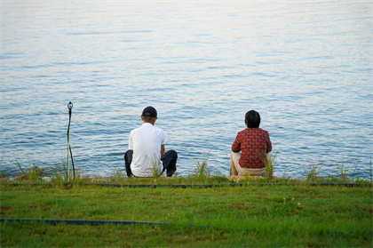 坐在湖邊的長椅上