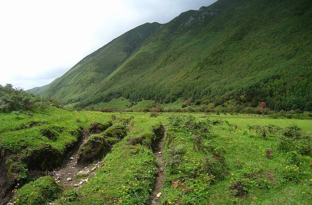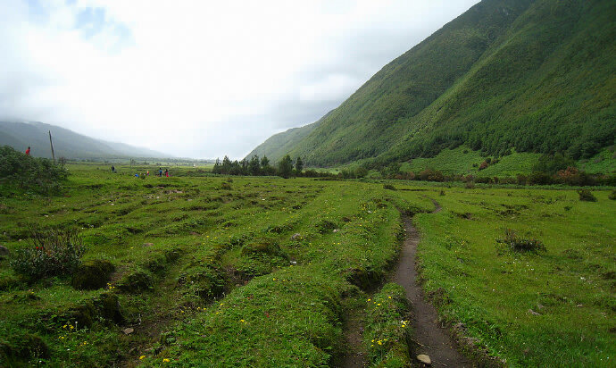 云南大理花甸壩,是蒼山頂上一塊美麗富繞的盆地,坐落在云弄、滄浪兩峰之間。這里是蒼山僅存的尚未正式開發的地區,是徒步者的天堂。平坦的草甸寬闊無邊,仿佛一直延伸到了天的盡頭。