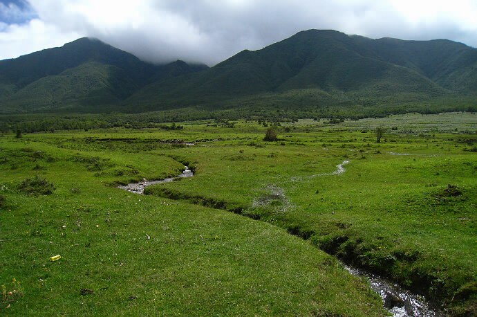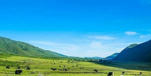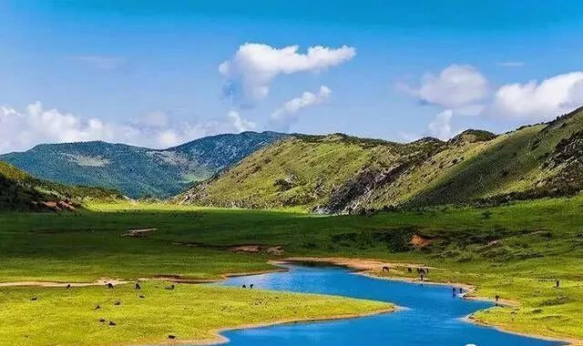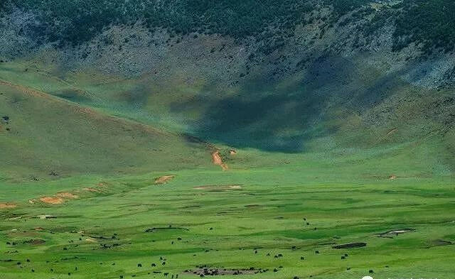 無數條小溪從山脈里泌出,又在草甸上蜿蜓而過……讓人不禁懷疑,總感覺應該是在千里之外的蒙古大草原。