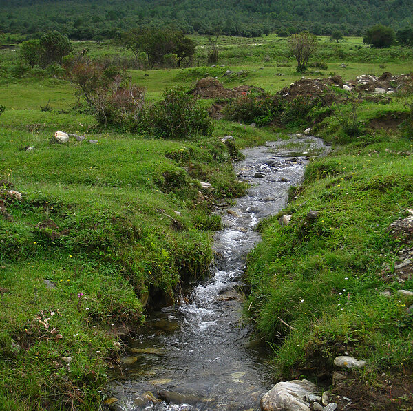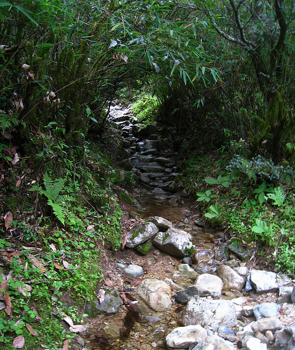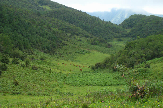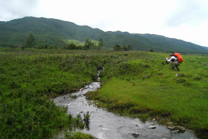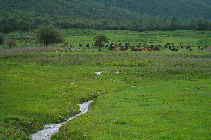 第二天約爬2小時山至小花甸埡口,之后徒步小花甸約一個小時左右,隨后開始水路下山,出發前一定要問場長方向,方向錯了就走到洱源縣的鳳羽去了。