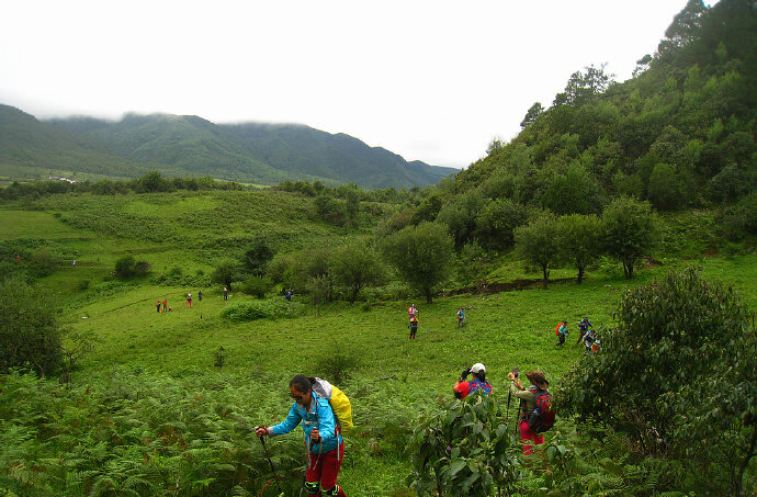 云南大理風景區花甸壩,是蒼山頂上一塊美麗富繞的盆地,坐落在云弄、蒼釀兩峰之后,海拔二千九百公尺,南北長二十多公里,東西寬約三公大理戶外拓展徒步旅行-花甸壩里。