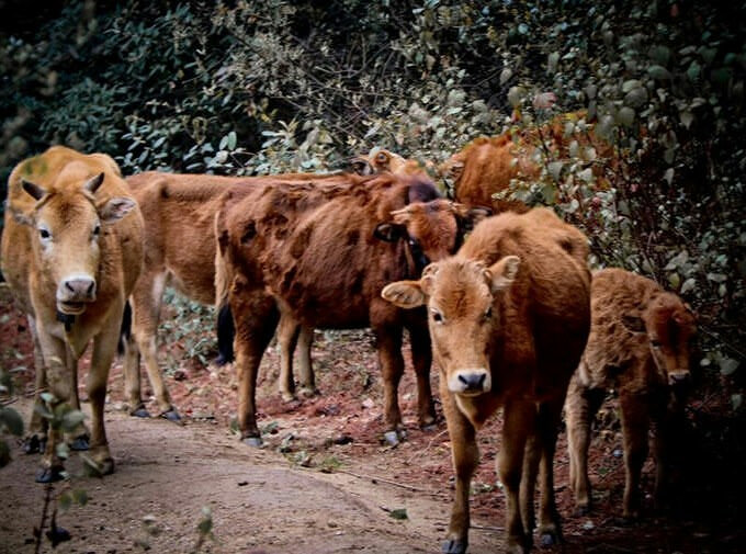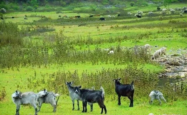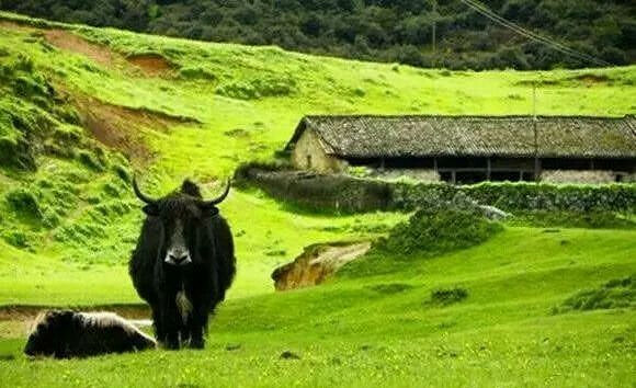 在這個高山草場里,成群結隊的黃牛、牦牛、綿羊和三三兩兩的馬兒,在悠哉的吃草、追逐、戀愛,或者躺著曬太陽,很是自在。