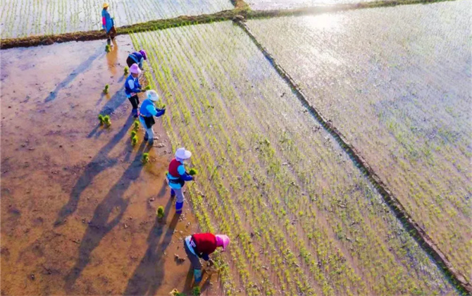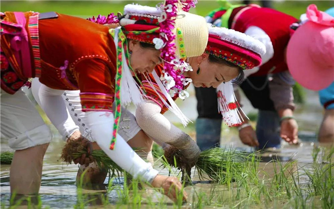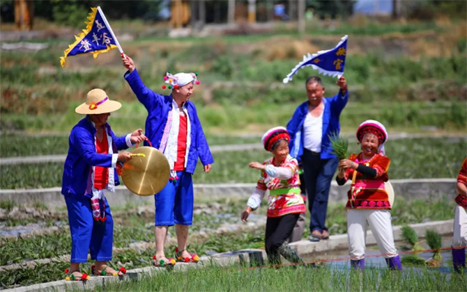 秧旗飄揚(yáng)在田頭,白族調(diào)唱得歡暢,汗水滴進(jìn)泥與土,人們對于豐收的祈望又更加堅(jiān)定。