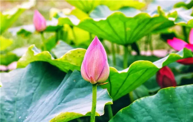 湛藍蒼穹上,皎潔白云緩緩移動。清風拂過,片片荷葉如綠波蕩漾,一朵朵次第開放的粉荷,宛若出塵仙子,別有一番“接天蓮葉無窮碧,映日荷花別樣紅”的詩意。