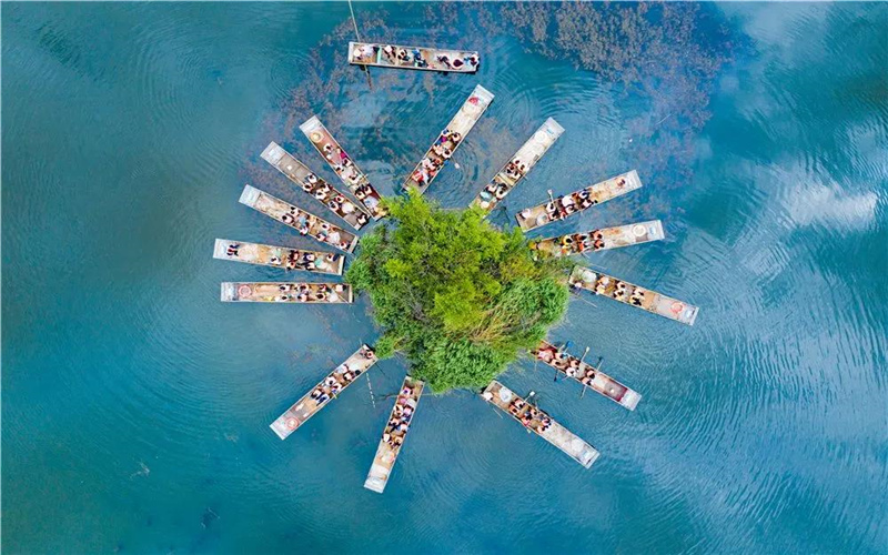 穿一襲古代婚服,泛舟湖上,吟詩作對,把酒言歡,談笑歡宴,徜徉在黃龍?zhí)兜男沱愶L景里,感受大理初夏別樣的情趣與靈魂共鳴的美妙。