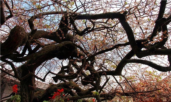 盛夏時節(jié),樹影婆娑,梅果滿枝;寒冬臘月,滿樹繁花似雪,暗香浮動。古梅閱歷風霜,依然充滿生機,傲立古道旁,依依守望古道過往……