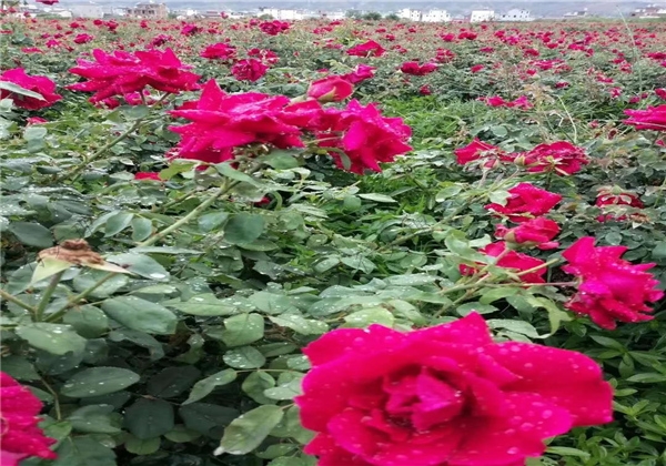 陽光照耀在玫瑰花上,發(fā)出耀眼的光芒,向四面八方發(fā)散,將天地照亮。面對如此壯闊的玫瑰花海,不由得讓人心中發(fā)出由衷的贊嘆:從沒見過如此大面積的玫瑰紅,從沒有見過如此深顏色的玫瑰紅,從沒有見過如此跌宕起伏的玫瑰紅。如此跌宕起伏的玫瑰紅可以從4月初一直到12月。