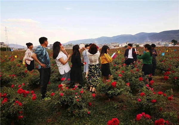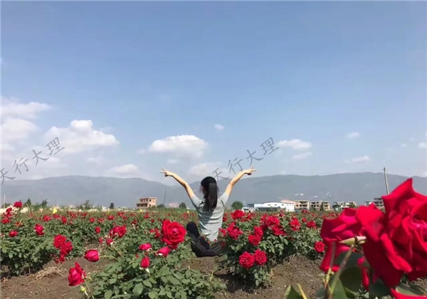 翻過定西嶺,站在后山坡,放眼彌渡壩,錦緞般的紅色彌漫150平方公里的彌渡壩子,整個彌渡壩一片紅彤彤。從坐落在紅巖赤水村的天天玫瑰園,到七彩云花玫瑰花莊園,再到賴龍食用玫瑰園等,成百上千畝規(guī)模化玫瑰園里的玫瑰花競相綻放,染紅了山嶺,染紅了村莊,染紅了大地。