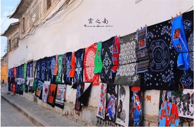 喜洲古鎮保存著大理古建筑在喜洲古鎮可以看到很多漂亮的扎染店。