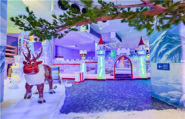 景區還配套有室內冰雪樂園,以親子、游樂為主線,串聯藝術冰雕和娛雪場景,可以滑雪、滑冰、堆雪人、打雪戰,還可以和原始人、王子公主、動物萌寵等近40種卡通形象冰雕拍照互動,深受親子家庭青睞。
