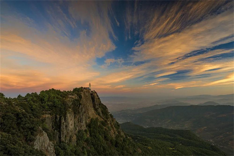 蒙蒙秋雨下,青翠蔥蘢的雞足山云霧繚繞;待秋雨初歇,跌巖起伏的山巒若隱若現(xiàn),勝似仙境;天氣正好時(shí),登臨天柱峰頂,東觀日出、南觀祥云、西觀蒼洱、北觀玉龍雪山,和心中的TA一同奔赴,方不負(fù)這秋日盛景。