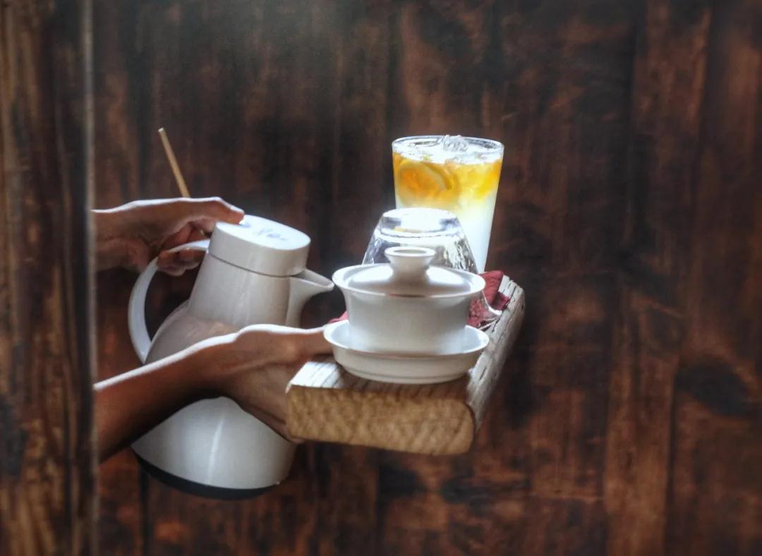 遠道而來的人們可以吃上一碗美味的素齋,還可以免費喝一杯清茶。