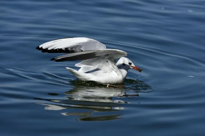 而在海心亭,一邊欣賞蒼山雪,一邊看海鷗,是一件愜意事,當海鷗停落在海岸線,海鷗就成了水天的分隔符。