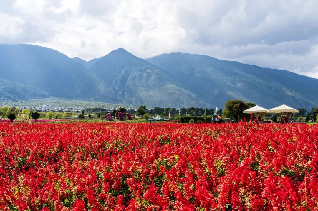 漫說花無百日紅,誰知花不與人同。千日紅又名百日紅、火球花,花果期在7-10月。花色艷麗有光澤,除用作花壇及盆景外,還可作花束、花籃等裝飾品。博爾赫斯曾在小說中提到:“如同畫家用畫筆把枯萎的小花勾勒裝飾成精美抒情的千日紅。”可見其色澤絢爛卻絲毫不張揚,柔婉動人的花色拉開了大理秋日豐收的序幕。