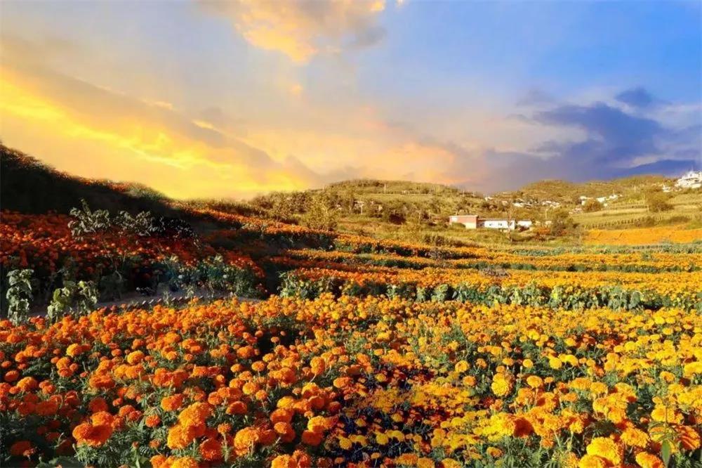 正是秋收好時節,大理劍川漫山遍野的萬壽菊花田正上演一場忙碌而有序的豐收競賽,采菊人在花海里來回穿梭,收獲的喜悅、綻放出的幸福笑容構成了一幅幅美好的畫面。置于花海中,萬壽菊的花瓣重重疊疊,花朵盡顯妖嬈,姿態萬千,正是人與花共赴的一場豐收盛宴。