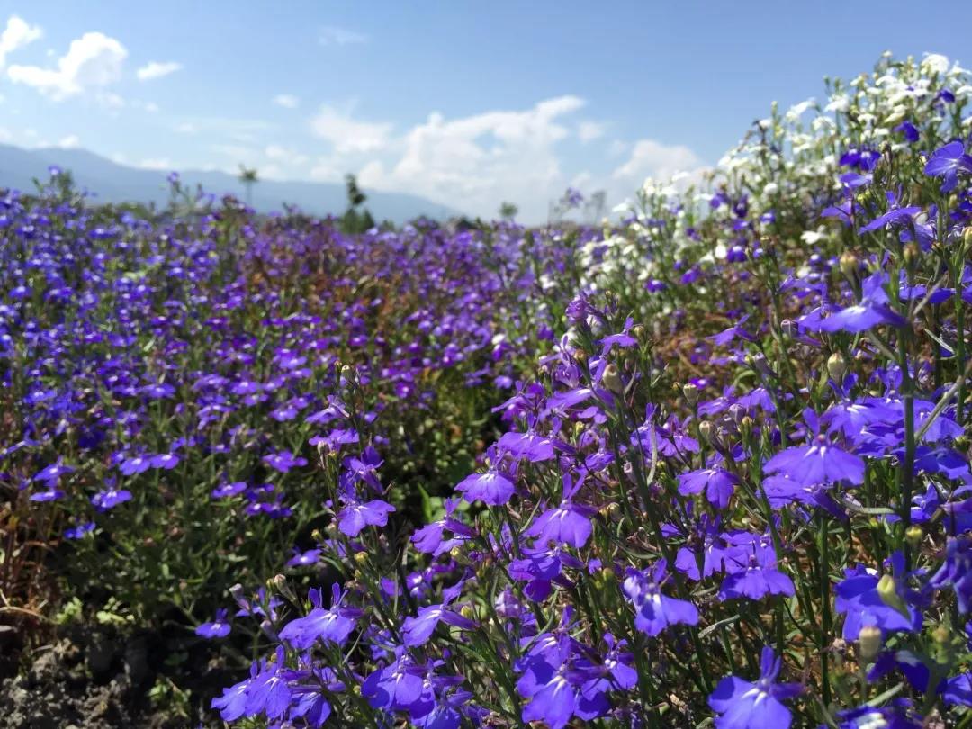 如同彩虹每種色彩之間都有暈染的過渡一般,大理云上村莊的繡球花田有深藍、有淺藍、有紫藍、有粉藍,花色多變,因為每一小塊地微妙的酸堿變化會呈現出不同的色彩。種過繡球的人都知道,要讓繡球呈現出一定的顏色幾乎不可能,渡邊淳一由此寫出小說《紫陽花日記》,描述中年夫妻的情感如同紫陽花一般難以捉摸,這里的紫陽花指的就是繡球花。這種不確定性,也就是它的迷人之處吧。一眼望去,眼前頭頂藍得滴水的花朵映入眼簾,聊解了秋日煩躁的心情。