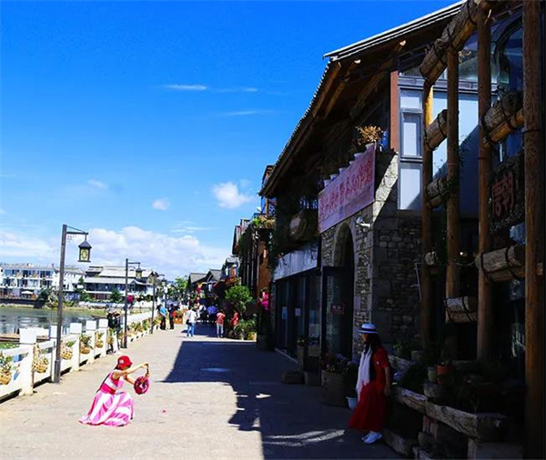 民族文化街橫貫集鎮南北,由長約三公里的主街道和數十條小巷道組合成魚骨造型,以白族民居建筑為主,沿襲了傳統的白族建筑藝術風格,并把傳統建筑藝術與現代建筑藝術風格融合,尤以雕塑彩繪及青瓦、灰墻、淡墨畫和三坊一照壁的建筑結構形式為主,體現出古樸、優雅、淳厚的民族風格。