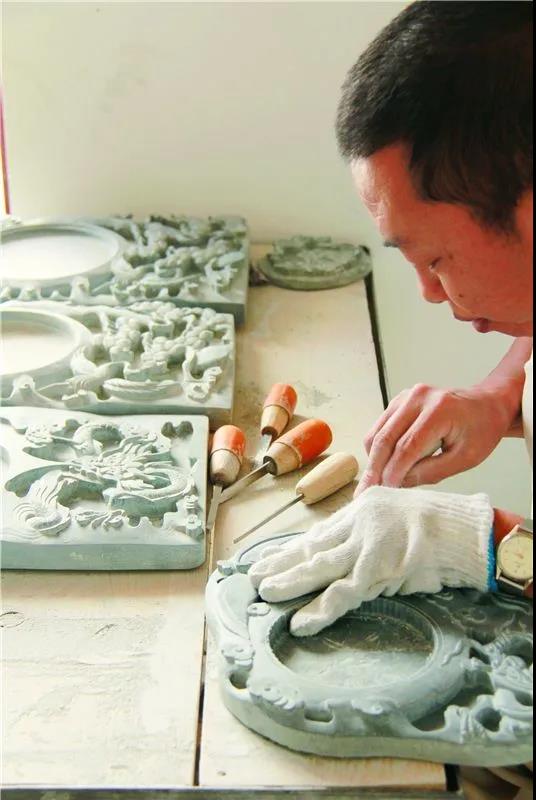 出生在制硯世家的張躍堂耳濡目染,從小就對工藝十分感興趣,放學回家畫圖畫,為制硯打下堅實基礎,后來他用5年時間便“出師”了。以50年為一代算來,鳳羽硯傳到張躍堂已經是第8代,至今已有300多年的歷史。