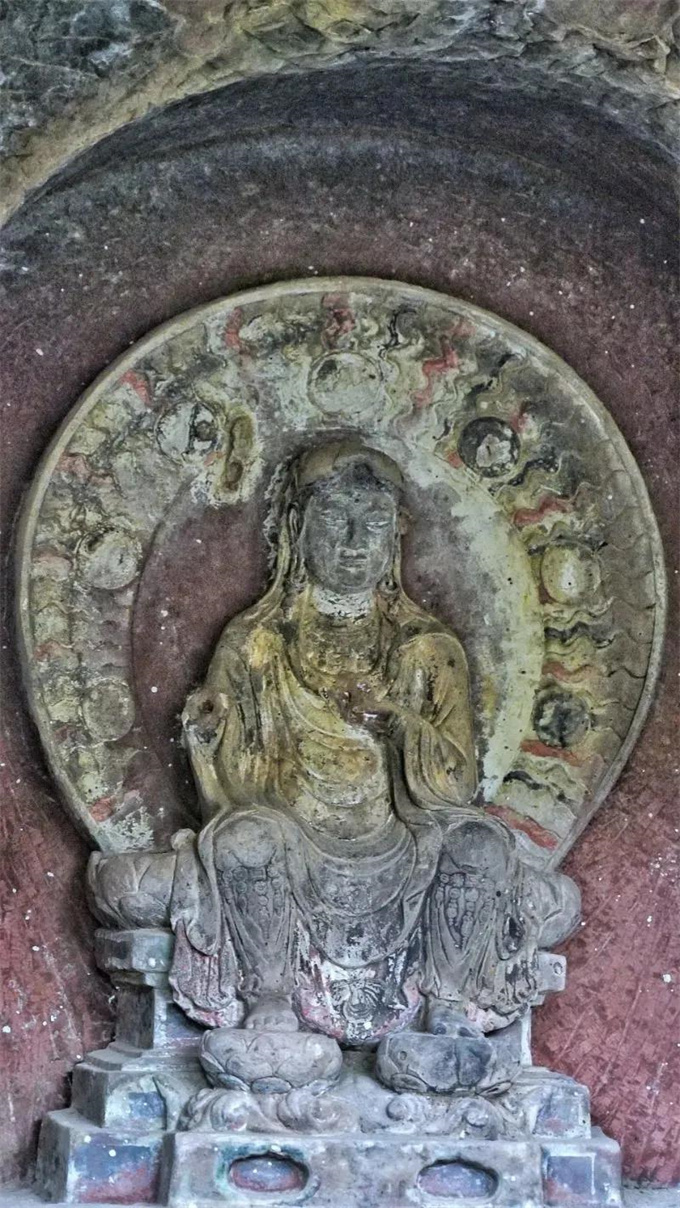 石像邊寫著警示:不準潑香油。細看一下,雕像及周圍果然有深色的油漬。看護石窟的工作人員解釋,當地民眾至今仍有潑油祈福的習俗,據說這么做能求子。