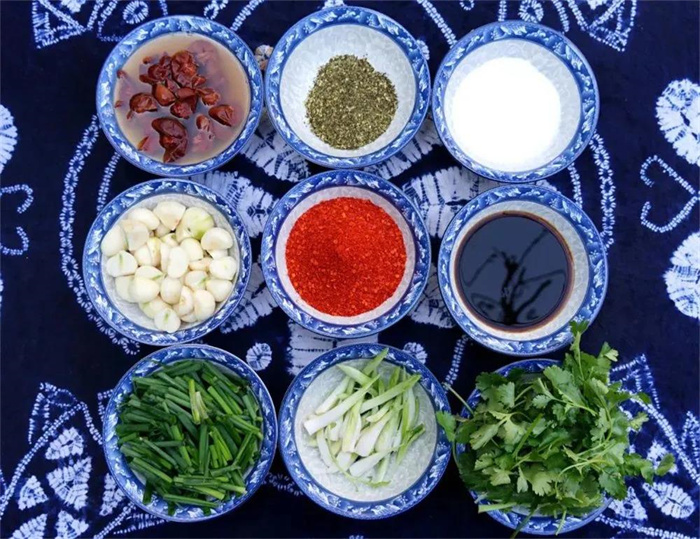 以酸精(檸檬精)、紅辣椒面、青蒜苗、草果粉、洋芋等為主要原料,海稍魚(yú)采用獨(dú)特的烹飪技藝加工而成。