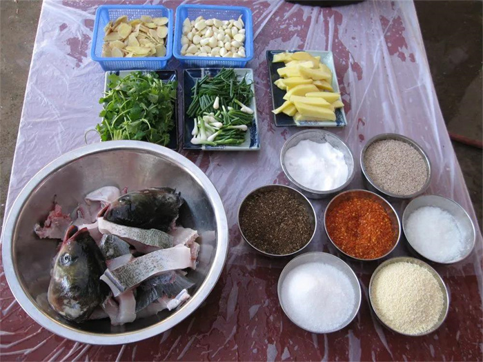 把魚(yú)殺好后進(jìn)行腌制,以大蒜、姜末、料酒、草果面等為輔料,后用粉蒸面和魚(yú)相拌,放在大蒸籠里蒸煮,一道鮮香味美的粉蒸魚(yú)就大功告成了。