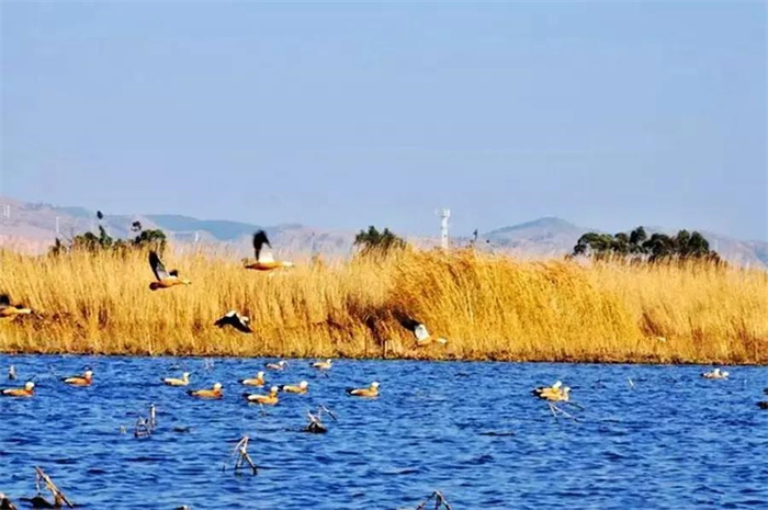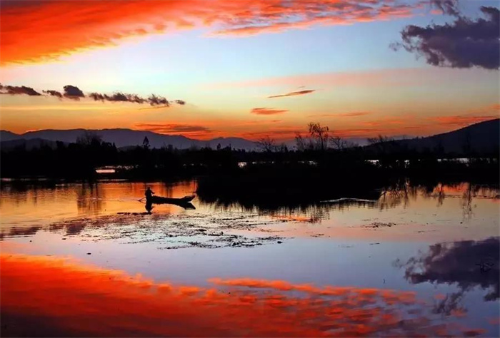 置身洱源西湖,仿佛置身一個神秘的天國。除了風聲、歌聲、鳥聲,整個西湖闃寂無聲。秋日的余暉輕輕拍打著它,它仰天向上,把神秘的幸福密碼深壓在身下。“湖光蕩漾幾回紋,漁父歌聲鬧水濱,信口舢敲湘漢句,斷腸弄笛雁鴻云。三三對白煙蓑合,兩兩歸帆獲岸分。最趁夕陽含缺處,前村沽酒帶余醺。”在這樣一幅背景中,偶爾還能看到牧童嬉鬧,大娘浣衣,村姑笑吟。